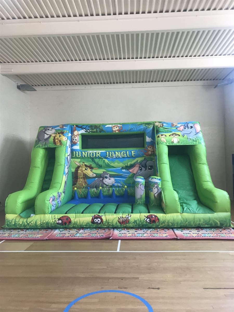 This is our very popular Jungle Junior Activity Package. Perfect for toddlers and bigger kids so great for any party where the age gaps is big and you have both little ones and slightly older ones to entertain. This Package has everything a Big Castle with bouncing area, secret tunnel with slide to the front and ball pond with Jugglers. The Soft Play Set floor is completely covered with soft play foam mats and filled with shapes, Plus another ball pond for the toddlers! We expect this package to be really popular so book early to avoid disappointment